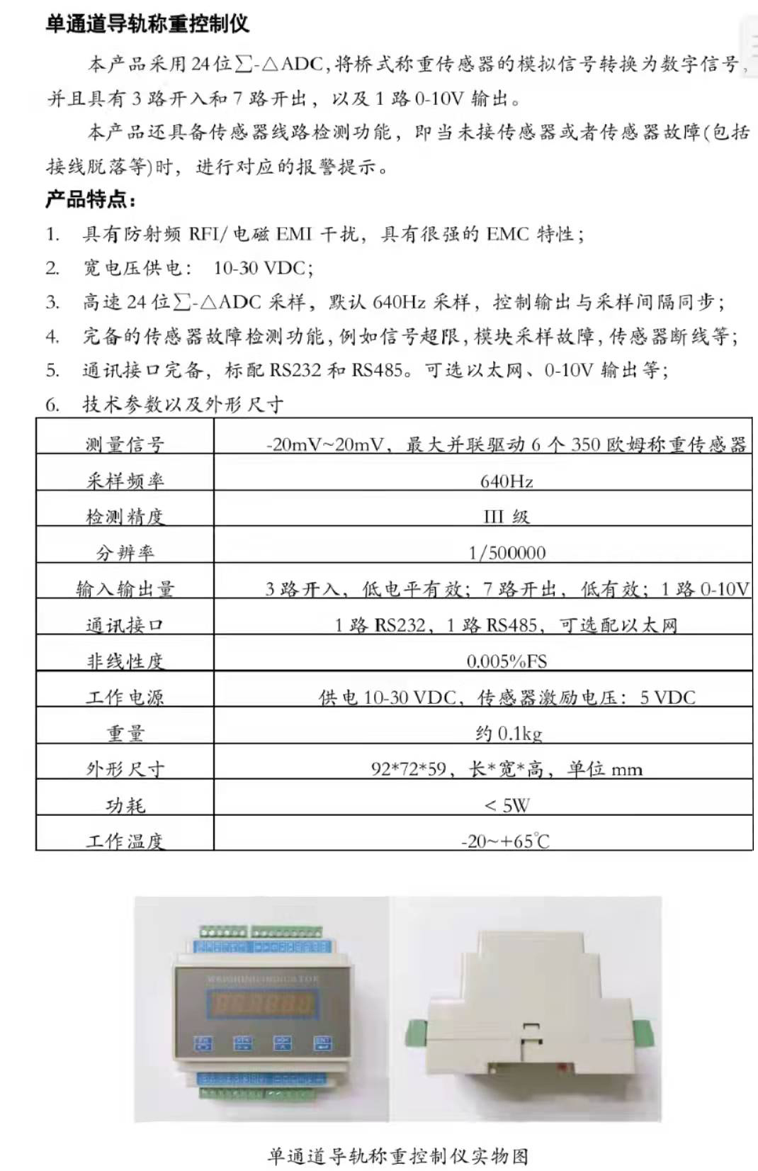 單通道導(dǎo)軌稱重控制儀